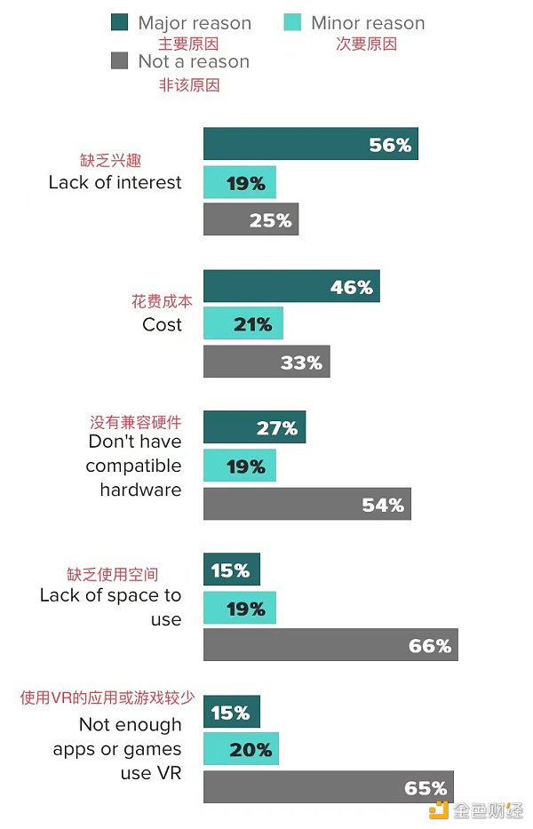 對于那些沒有VR設備的人來說,缺乏興趣和成本是主要原因。