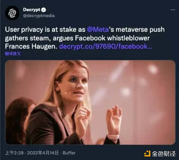 元宇宙不會是海洋中心的孤島。要解決這個問題就需要打造一個使用開放標準和開源技術的元宇宙。在媒介方面,以太坊 NFT 和 IPFS 是前景較好的開放技術的例子。在 Web3 生態系統之外,還有很多了不起的應用或標準,比如 VRM,一種用于 3D 頭像的開放文件格式,以及 WebXR,一系列用于支持瀏覽器上的 VR 內容的標準。繼續將所有這些開放的創新融合在一起,我們離元宇宙就越來越近了。?