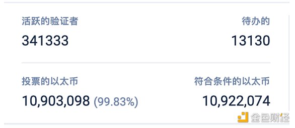 截至4月12日,信標鏈運行平穩。鏈上數據顯示,信標鏈已擁有34.13萬個節點,累計質押總額約1090.46萬Eth,其中有效投票參與率達99.84%。自2021年10月15日至今,節點數量和質押總額穩步增長,每日驗證者收入也在緩慢增長中。