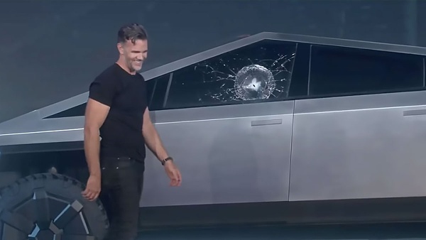 球鞋是PS的!馬斯克的粉絲并不覺得奇怪。因為,特斯拉曾推出過一款Cybertruck防彈T恤,T恤正面破碎玻璃圖形的靈感來自于揭幕活動中不幸被擊碎的側面車窗。