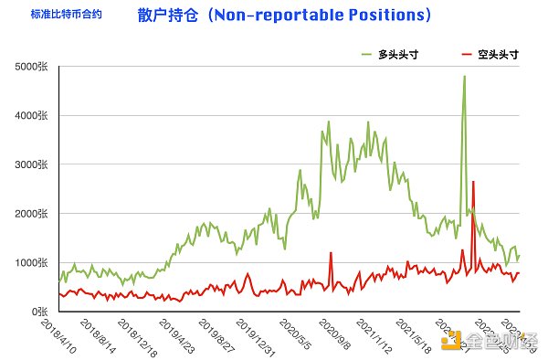 經銷商賬戶多頭頭寸自?2001?下降至?1804,空頭頭寸自?803?上升至?1225,經銷商賬戶在微型合約中進行了明確的凈空調倉,這一思路與這類賬戶在標準合約中的選擇一致,進一步鞏固了大型機構對于短期市場偏空的態度。