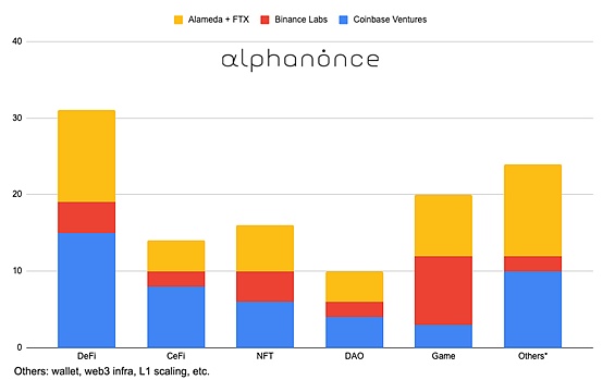 第一類,交易所VC?,代表:Coinbase Ventures、Alameda+ FTX、Binance Labs。