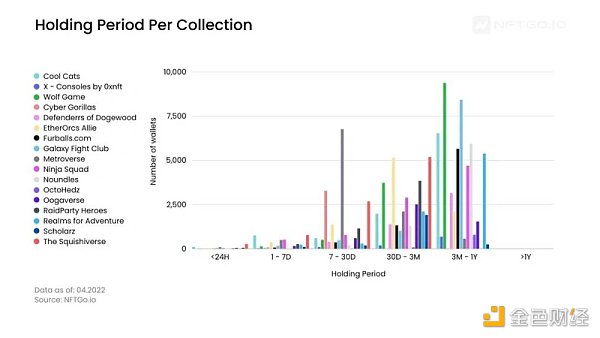 GameFi 和 BAYC 的持有期;數據來源:NFTGo.io