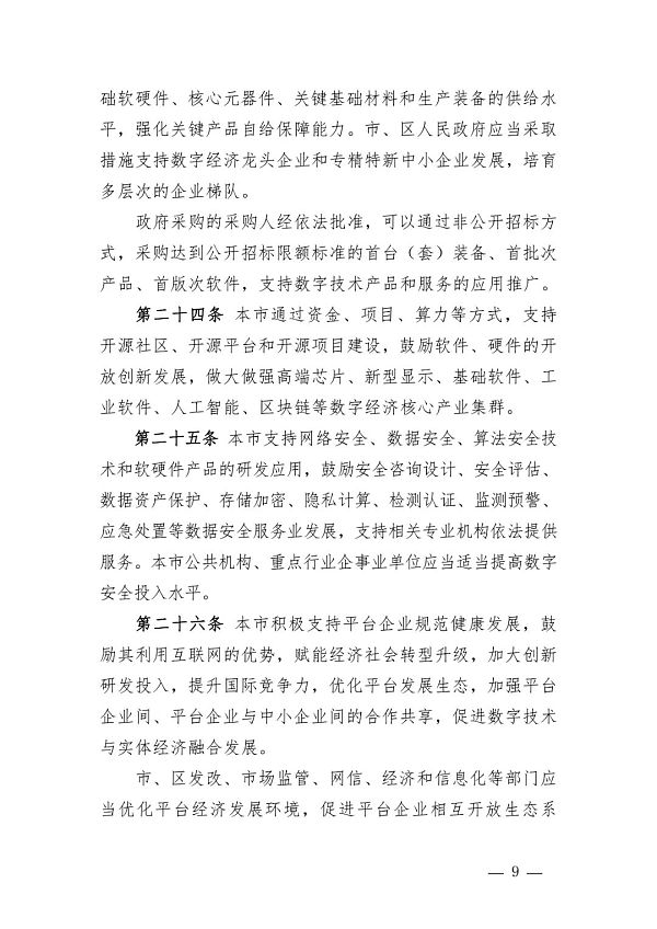 《條例》共九個章節,涵蓋數字基礎設施、數據資源、數字產業化、產業數字化、數字化治理、數字經濟安全、保障措施等內容。