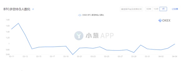 OKEx官方數據顯示,過去一周多時間里OKEx交易所比特幣多空持倉人數比一直保持在1以下運行,而這種空頭持倉人數持續超過多頭持倉人數的狀況在該交易所公布這項數據以來極其罕見,因此可以認為3月中旬的一波急跌跳水對于散戶情緒的影響非常強烈,目前雖然BTC價格趨于平穩,但是悲觀的市場情緒并沒有得到有效扭轉。這種環境中,究竟是“真理掌握在多數人手中”還是“別人恐懼時我貪婪”,這個問題也許只能留給每位讀者自己思考了。