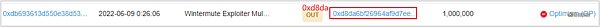 (5)6月9日,合約0x4f3a將其中的100萬OP轉賬給了賬戶地址0xd8da,