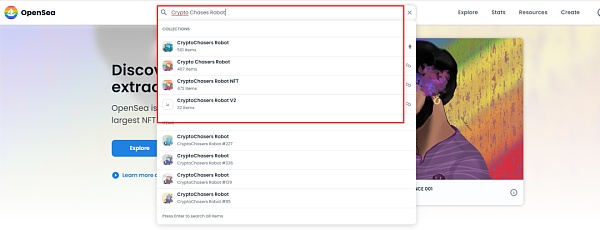 比如之前有位群友想買朋友推薦的NFT,根據圖片去OpenSea搜索,關鍵詞[Crypto Chases Robot]直接點了,然后就下單了,后面才發現買了個寂寞,原來買到了山寨NFT。