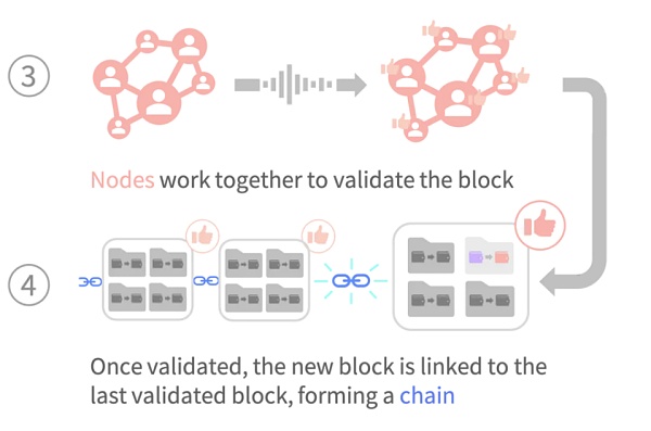 一旦這些計算機達成共識,交易區塊則被打包到區塊鏈上,成為網絡歷史記錄中的一部分。