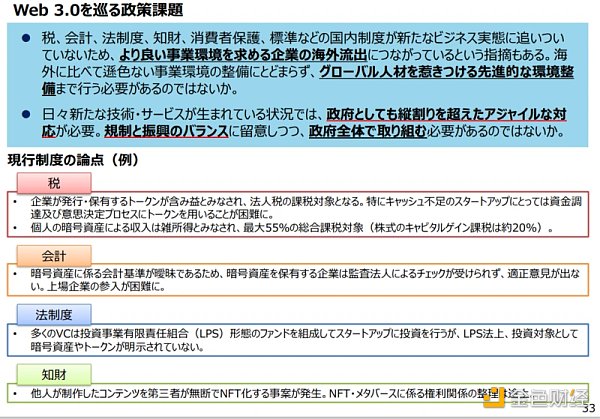 ③(考慮到日本的)地理和資源限制,需要在網絡空間開發一個不受地理或資源限制的全新增長領域。目前正在關注Web 3.0(Web3),因為它不受地理或資源限制的約束,可能成為網絡空間的一個新的增長領域,這些變化正在迎來一個新的的時期,將有可能改變現有的經濟秩序。