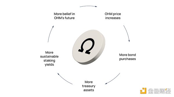 通過所謂的債券機制:用戶存入價值為 X 美元的資產(如 DAI、ETH 等),在一定時間(債券期限)后獲得 X + 溢價 OHM。