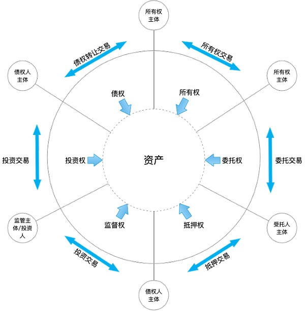 長久以來,維系金融市場穩定安全的重點主要放在確權上,確權的主要依據是交易記錄和合同,債權人、債務人、受托人、投資人之間的權利義務關系也是通過金融交易和合同建立起來的。當交易類型涉及多方交易,且資產被金融產品化后,存在典型的資產轉移、拆分、合并等市場操作行為,而原有確權關系只在原有交易記錄和合同中有效,資產狀態的變化使多方主體失去直接行權能力。例如:供應鏈金融產品的投資人對于該產品的底層資產無法直接行使監督權,當底層資產崩塌,資不抵債時又失去贖回權。金融交易的行權,應當不受金融產品的包裝、組合等結構影響,實現穿透式的行權能力。