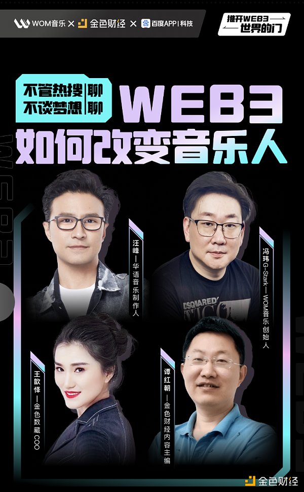 主持人:感謝幾位嘉賓的精彩分享,希望通過今晚的解讀,大家能更好地了解?Web3?世界,以正確的姿勢理解數字作品的價值,從而參與到web3創作者經濟的生態建設中。那我們今晚的直播就結束了,喜歡我們,別忘記點擊關注金色財經、關注汪峰老師和Wom音樂的最新作品。各位,我們下周再見~
