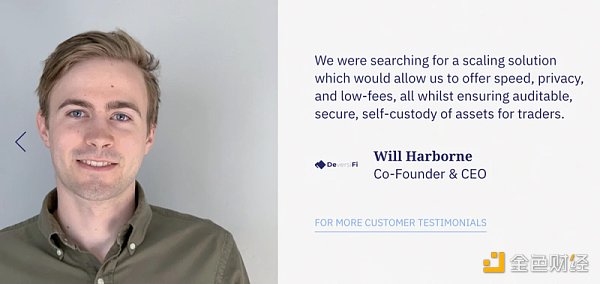 StarkWare 目前的收入主要依賴于 StarkEx 的技術服務,客戶的主要需求是,希望保持以太坊級別的安全性,同時減少 gas 成本。官網顯示目前有 6 位客戶。分為 2 類: