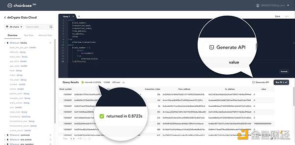 所以我們在設計新一代數據索引的產品時,拋棄了點對點的解決方案,采用了類似 Web2 數倉的概念——一個支持自定義SQL語句的鏈上數據云倉!鏈上數據云倉通過實時計算解碼鏈上數據;開發者可以根據自己的需求、使用最主流的SQL語句對鏈上數據進行自由索引。