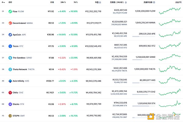 NFT總市值、市值排名前十項目 數據來源:coinmarketcap