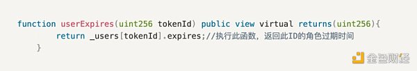 userExpires 方法:任何人可用,查詢此NFTID的過期時間