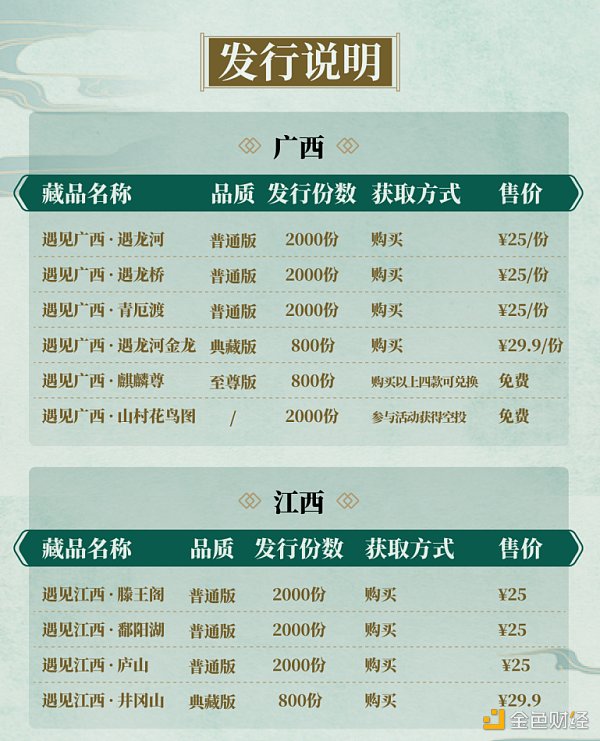 金色數藏推出2期「夏日尋蹤 · 遇見系列」數字藏品,分別圍繞著廣西和江西,珍藏自然文化印記,銘記綠水青山。