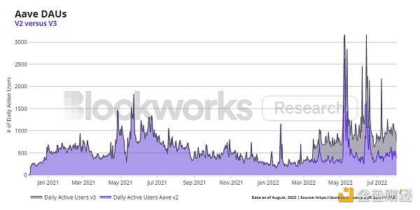 Aave V3 現在看到的 DAU 比 Aave V2 多: