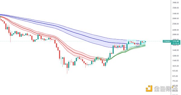 ETH短期日線上軌壓制1760,一旦突破站穩,后續大概率繼續上攻,后面較強壓力區間1900-2000.