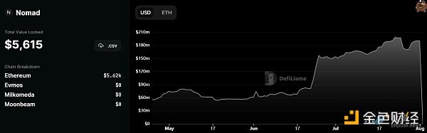 隨著 Evmos 和 Moonbeam 的總價值上升,Nomad在7月下旬達到了近2億美元的總價值。