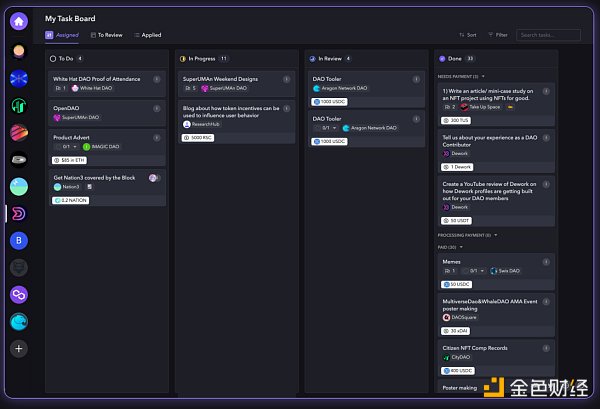 Dework 是 Web3 原生的項目管理平臺。具有 Token 支付、認證、賞金功能。目前已被多個 DAO 使用,包括 OpenDAO、AragonDAO、CityDAO 以及 ShapeshiftDAO。