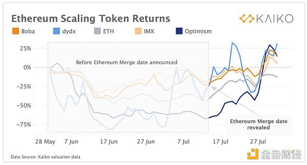 然而,隨著合并最終日期的臨近,市場對整個以太坊L2更加看好,OP開始跑贏大盤。這種看漲情緒在 OP 的期貨市場上也很明顯,在上周資金利率呈正增長的情況下,該市場的未平倉頭寸依舊大量增加。