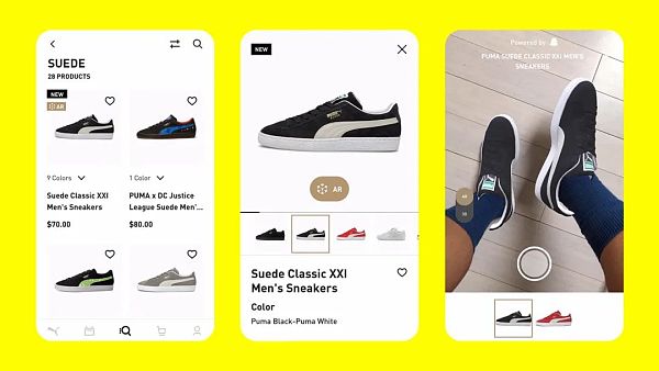 在大會上,Snap公布了AR購物相機組件(Camera Kit for AR Shopping)的更多細節,這一套工具包能夠將Snap的試穿鏡頭插入品牌的產品頁面,讓用戶輕松試穿服裝、飾品和鞋履等多種商品。品牌可以使用AR圖像處理技術(AR Image Processing)功能分秒內就將商品變成AR購物鏡頭,接下來用戶只需拍一張全身照,就能輕松試穿多種商品。Puma將成為第一個使用這項技術的合作伙伴,消費者只需將手機指向腳部就能自動試穿上正在瀏覽的商品,即刻看到Puma球鞋上腳效果,未來Snap還將增設家具和手袋等多品類AR購物模板,支持更多購物場景。