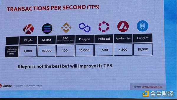 不過,如果按每秒交易量(TPS)計算,它并沒有使 Klaytn 成為最快的區塊鏈。在 4k TPS 時,它遠遠落后于 Polygon、Fantom 或 Solana,但 Klaytn 正計劃對此進行改進。