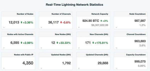 7. 2020 年 3 月,閃電網絡全網已擁有 12,013 個節點、36,117 個狀態通道、網絡容量達到 925 個比特幣。