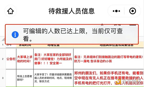 但同時,此次事件也暴露出了當前多人協作所存在的問題。例如訪問人數太多,數據存儲容量有限,導致無法同時在線編輯。