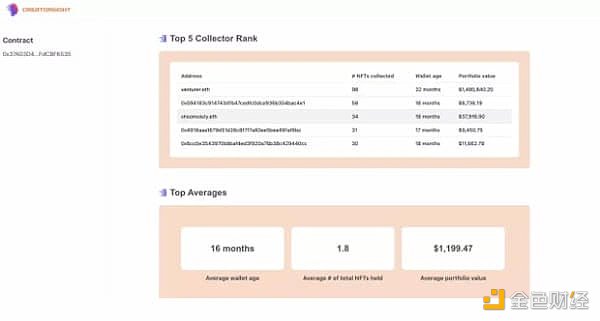 Creatorsight 是一個為 Web3 創作者構建的平臺,可以幫助創作者分析和了解他們的收藏地址數據,包括頂級收藏地址、NFT 持有平均時間等。