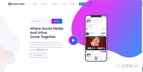 在Artemis平臺的創作者、影響者、音樂家和藝術家都可以在NFT平臺上安全的推銷他們的作品,并且還將允許成員創建、收集和發現來自世界各地的NFT。項目方的愿景包括幾個方面:跨多個區塊鏈網絡無縫運行的NFT創建引擎、一個去中心化的社交媒體內容市場、創作者和收藏者可以直接與廣告貨幣化以及接收Artemis Token進行互動、創作者資料將允許他們選擇用于銷售的智能鏈以及接收粉絲的貢獻。