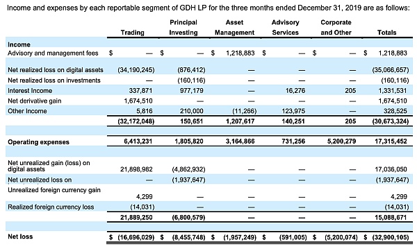 盡管Novogratz對整個比特幣市場充滿信心,但銀河數字(Galaxy Digital)在2019年最后一個季度遇到的麻煩依然不小。其交易部門的凈實現虧損超過3200萬美元,其中總凈虧損約為1670萬美元,其主要投資部門也凈虧損840萬美元。