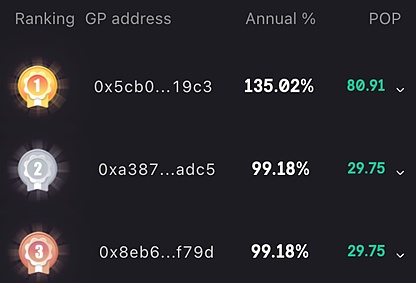 并且我們也可以看到當前 GP 的排名:(GP數據來源 Multiple Protocol Playground)