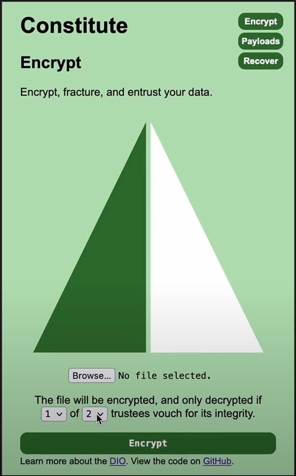 在 Fracture | Constitute 中有兩個角色:Trustor 設置可以恢復數據的條件(Trustee 數量的最大最小值),Trustee 保存加密文件并幫助恢復數據——該角色數量只需滿足條件,即可恢復數據。