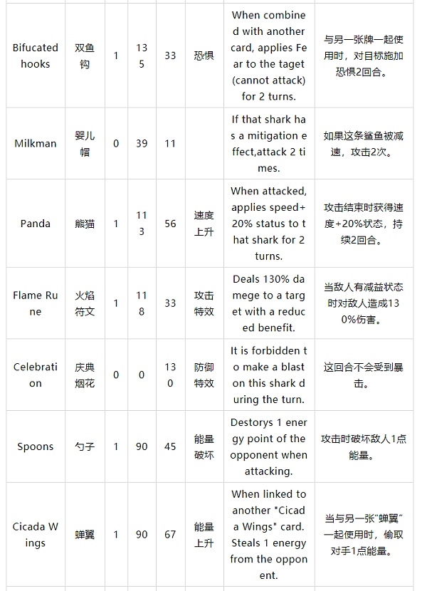 不同種類和等級的鯊魚,上述屬性的數據是不同的。