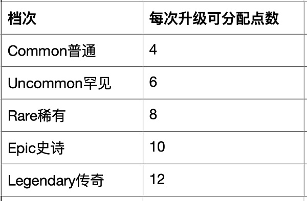 而且針對每一種檔次的運動鞋,每次升級可供分配的點數不盡相同,具體參考以下表格。