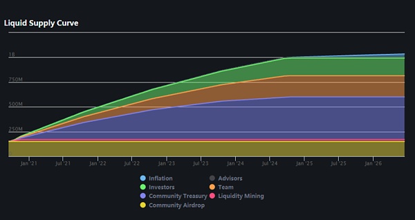 Uniswap最初并沒有發行Token,隨后在Sushiswap的吸血攻擊下不得不發行Token。其Token主要用于為項目社區提供自我維持的激勵機制,保持項目社區自治屬性。