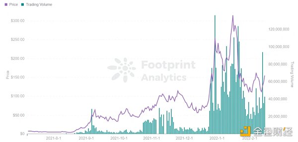 據 Footprint Analytics 的數據顯示,Metis 的 TVL 主要來自 Netswap,占整個 Metis 公鏈網絡的 TVL 58.87%。Netswap 于 12 月 6 日上線,不到三個月的時間里,TVL 漲幅 282.4%,截止 2 月 15 日,Netswap TVL 為 2.21 億美元。