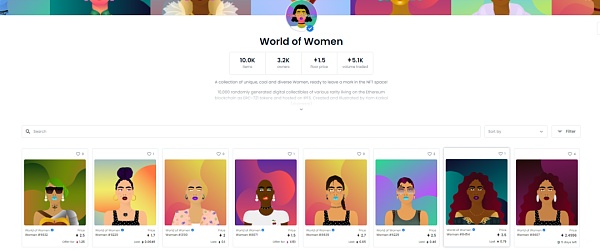 排名第8,WorldOfWomen,從數據可以看出,該項目最低價1.5枚ETH。