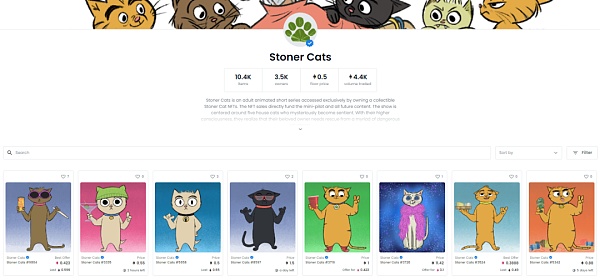 數據顯示,第20名的StonerCats,其近七天的銷售額為1091枚ETH,約為300萬美元。也就是說,就是這么個像素貓圖片NFT,過去7天產生了300萬美元的交易額,約合2000萬人民幣。