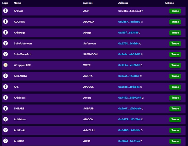 一些部署在 Arbitrum 網絡上的代幣 | 來源:arbucks.io