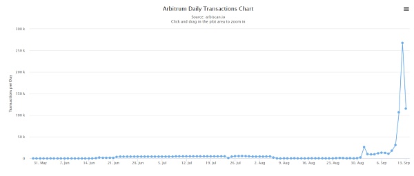 Arbitrum 歷史日交易量 | 來源:arbiscan.io