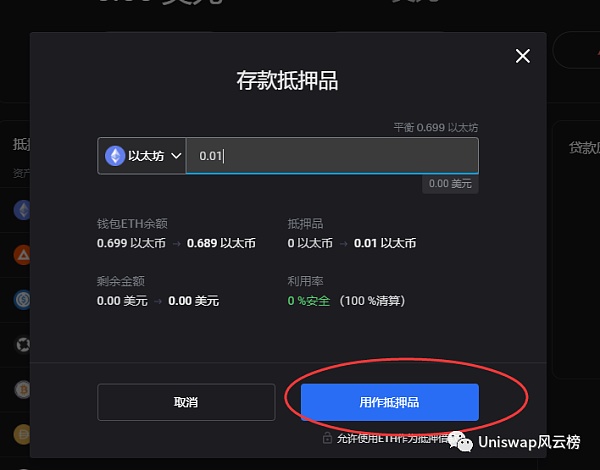 2:輸入貸款金額和抵押品選擇以查看預期的抵押金額和年利率,無誤后點擊[Borrow]