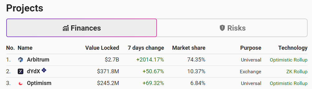 l2beat顯示以太坊前三大二層網絡正快速積累TVL
