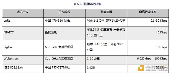 上述表5-1的通訊協議,大都適合戶外場景、大面積傳感器應用、低功耗廣域網的應用場景,只是在某些細分領域,側重點可能稍有不同。