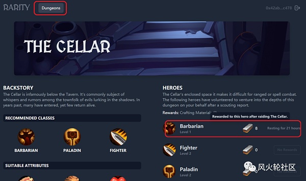 Nexo稱此前向Alameda提供了一筆小額貸款( 鏈接FTM錢包后,新手可點擊下方Recruit來生成角色,而不用再像最初的在合約欄目里填寫數字,游戲最初有11種英雄(可能后面還會加),你可選擇全部生成一遍,也可以只玩幾種,同一個角色多做幾個也行,這塊并沒有限制。 模塊化區塊鏈Celestia完成5500萬美元融資:10月20日消息,模塊化區塊鏈網絡Celestia完成5500萬美元融資,Bain Capital Crypto和Polychain Capital領投,參投方包括Placeholder、Galaxy、Delphi Digital、Blockchain Capital、NFX、Protocol Labs、Figment、Maven11、Spartan Group、FTX Ventures、Jump Crypto以及多名天使投資人,包括Balaji Srinivasan、Eric Wall和Jutta Steiner。 據介紹,Celestia引入了模塊化區塊鏈架構來解決部署和擴展區塊鏈的挑戰,Eclipse、Constellation和dYmension等模塊化區塊鏈項目已選擇Celestia作為其數據可用性層。Celestia于今年5月推出了其測試網Mamaki,其引入了一個新的數據可用性API,為構建區塊鏈解鎖了一個強大而簡單的原語:有序且可用的數據。Mamaki的升級計劃于2022年10月下旬進行。[2022/10/20 16:30:33] 點擊頁面上的Adventure可以冒險,每個英雄每24小時可冒險一次,一次增加250XP經驗值,滿級后有個level up需點擊授權完成升級。 以上是上周最基本的玩法,生成英雄+每日冒險,目前增加的功能,一個是領取金幣,點擊英雄的圖標可進入該英雄的詳情頁,當升到2級后會在頁面上方看到一個小寶箱,點擊領取即可: 每個是1000gold,這估計在之后會有些用途。 另一個是加點來獲取一些裝備材料之類的。 加點就是可以點擊英雄頁面右側的各屬性值進行分配,每個英雄有六類屬性(自上到下):力量、敏捷、體質、智力、感知、魅力,每個屬性基礎點是8,另有32個屬性點可供玩家加點。 根據分配組合的不同,玩家獲得不同能力的英雄,然后可拿這些英雄去打Boss,打過的可以獲得一些隨機掉落的材料、裝備,它們有些可在后續游戲中使用,有些可合成鍛造更多的裝備。 那么我們的目標就是合理組合32個屬性點來打贏Boss,怎么組合呢,dfarm社區提供了一個副本的模擬腳本,可以通過它來測試你的數據是否能掉落裝備: https://dfarm.club/rarity.html 模擬得到滿意結果后把加點數據填到英雄頁面里確認分配即可,確認后可到地牢頁面去領取: 如果要更可視化的話,有個第三方: https://www.raritymanifested.com/inventory 在inventory欄選擇正確的英雄ID進去就能看到獲得的物品。 根據AC大哥昨天的文,打出的材料可以通過消耗250xp,由有相應技能的工匠制作物品,不過目前好像只有些程序命令,我們可以再等等官方工具完善。 以上教程主要走的官方的頁面,供不太清楚模式的朋友參考下整體邏輯,現在市面上也有很多第三方、腳本之類,反正不管用什么,注意資產安全,盡量用小號地址來參與。 如果要獲得更多rarity的實時動態,最好是關注下AC的推(搜下AndreCronjeTech),AC大哥現在對這個游戲是非常積極的,也會轉推一些第三方工具,后續我會根據情況看是否再來更新這個項目的進一步玩法教程。 最后對Rarity這個游戲,來說點目前的看法,目前熱度還是有的,每天也能消耗一定量的FTM,問題方面,也可能是無限量低門檻吧,感覺暫時看不太到盈利模式,社區里現在做了些角色的交易市場,但暫時不能太指望,角色并不是難獲得的東西,如果不能在盡可能短的時間內出現新的模式,熱度會慢慢下降。 不過我不知道它是不是會真的按《龍與地下城》的玩法走,那一切可能就剛剛開始。 另外今天有個消息是AC大哥也準備了些獎金來激勵Rarity生態,通過游戲作為切入口,吸引流量,從而吸引開發者,最后慢慢組建成一個完整公鏈生態,或許也是一個不錯的角度,那對游戲玩家,說不定也有些獲取空投的機會也未可知。