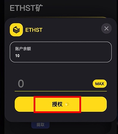 注意,用戶只有首次質押ETHST挖礦時,需要錢包“授權”信息。授權成功之后再次質押ETHST均無需“授權”操作,只需“確認”質押即可