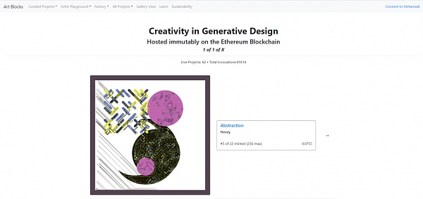 就如 Avastars項目那樣,Art Blocks的NFT是具有生成能力的,它們是通過計算機代碼去創建虛擬的設計品。生成藝術(Generative art)又被稱為算法藝術。這個項目讓收藏者在不知曉結果的情況下創建代幣:藝術品是按需創建的,在購買后才會揭曉相關結果。生成設計品所需的種子和軟件是在以太坊區塊鏈上存在的,因此這樣的NFT是無法改變的。每一個迭代品都是完全獨特的!