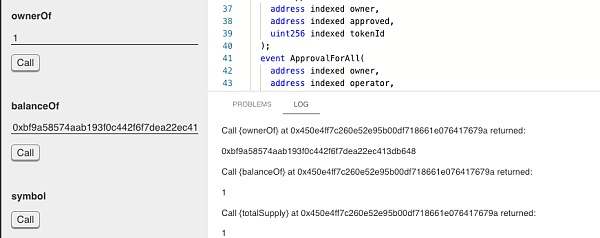 我們可以調用[ownerof]和[balanceof]函數來查看代幣的狀態。代幣的所有者已經轉移到下方賬戶中: